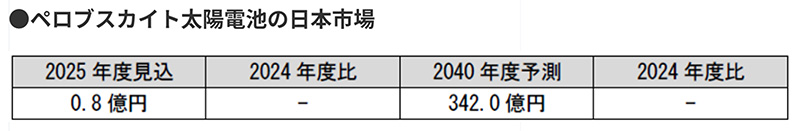 *   Perovskite Solar Cells: Global Market Rapidly Expanding with Single-Junction and Tandem Types, Japanese Market to Reach ¥34.2 Billion by FY2040